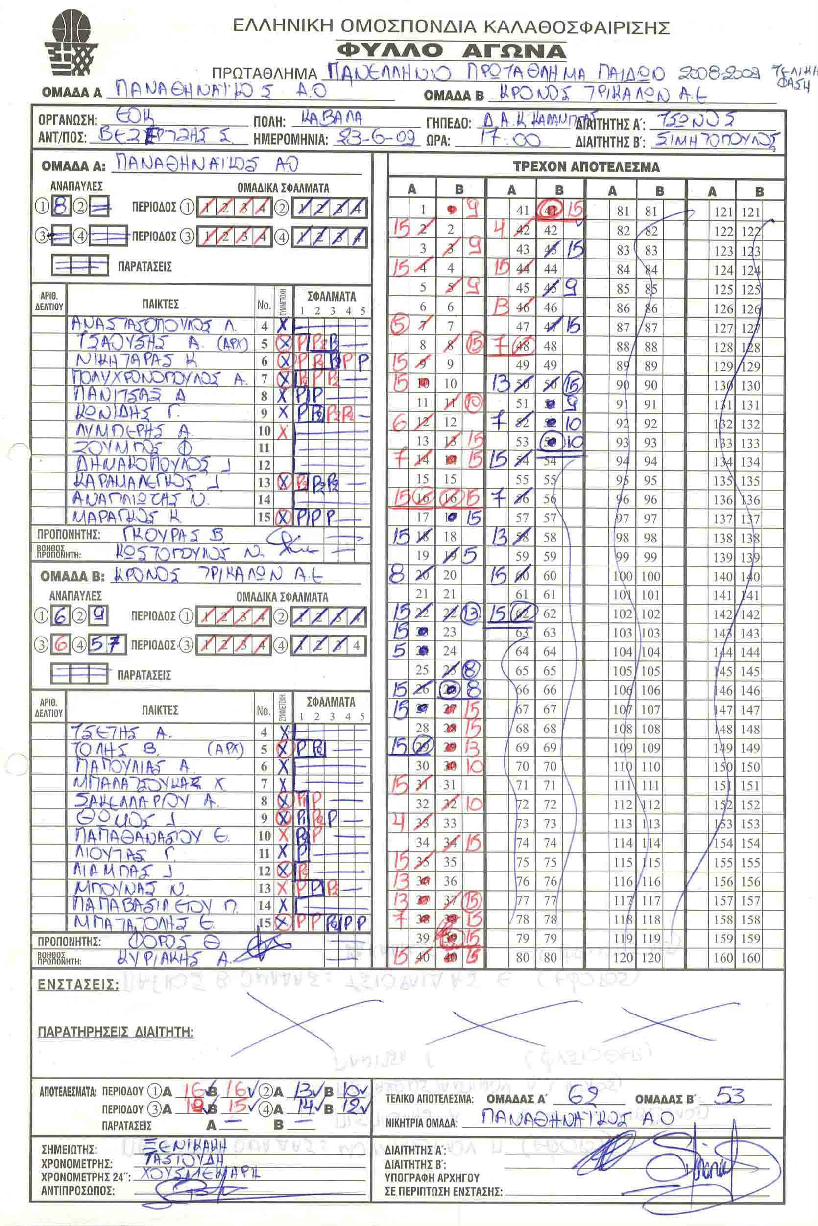 ΣΚΟΡΕΡΣ ΤΕΛΙΚΗΣ ΦΑΣΗΣ ΚΟΡΑΣΙΔΕΣ U16