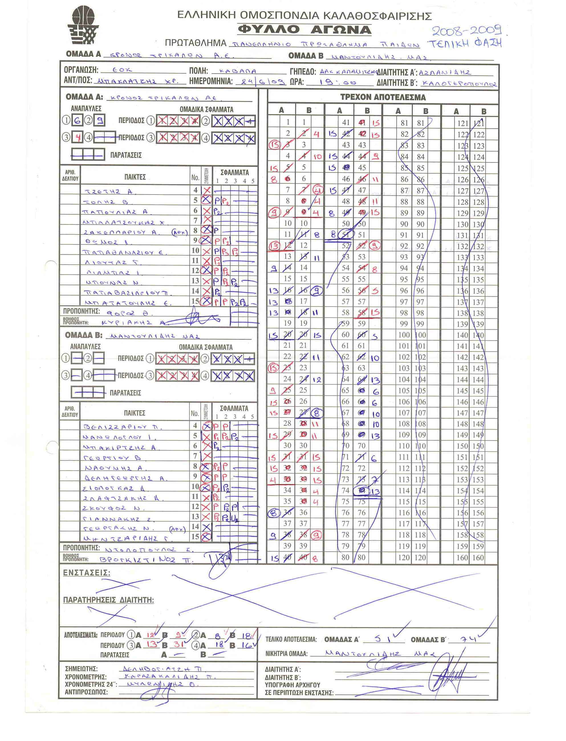 ΣΚΟΡΕΡΣ ΤΕΛΙΚΗΣ ΦΑΣΗΣ ΚΟΡΑΣΙΔΕΣ U16